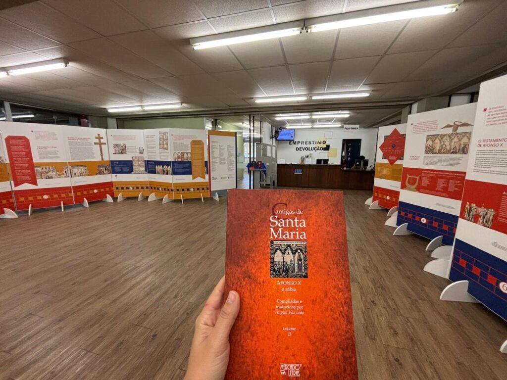 Na noite da última sexta-feira (27), a Biblioteca Professor Rubens Costa Romanelli, da Faculdade de Letras da UFMG (Fale), realizou a abertura da exposição ‘Afonso X e Galícia’, para ilustrar a coletânea de livros ‘Cantigas de Santa Maria’, lançada no mesmo dia no Centro de Memória da Fale e traduzida por Ângela Vaz Leão, professora emérita homenageada. Falecida em março de 2024, em Belo Horizonte, aos 101 anos, Ângela manteve-se intelectualmente ativa até quase o fim da vida.