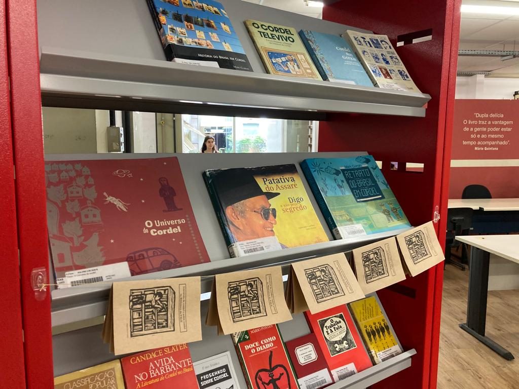 Na Biblioteca da Fale, podem ser conferidas antologias, catálogos, folhetos, livros e trabalhos acadêmicos do acervo, além de uma apresentação em slide sobre o tema literatura de cordel. A lista das obras expostas foi impressa em forma de folhetim para identificá-las.