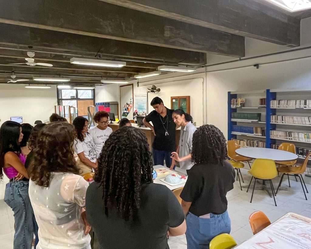 Biblioteca do CP apresenta realias do corpo humano e outros itens do acervo para jovens mulheres integrantes de projeto de extensão da ECI
