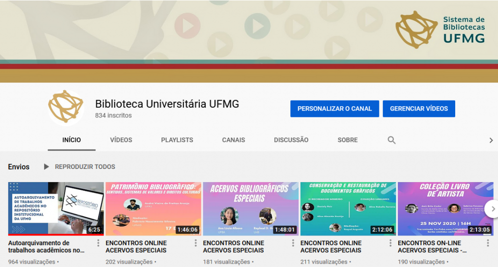 A transmissão será feita no canal do YouTube UFMG Biblioteca