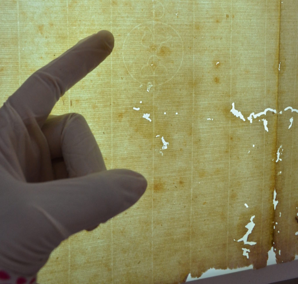 Filigrana, marca de autenticidade do artesão que produziu o papel, confere originalidade à obra analisada.