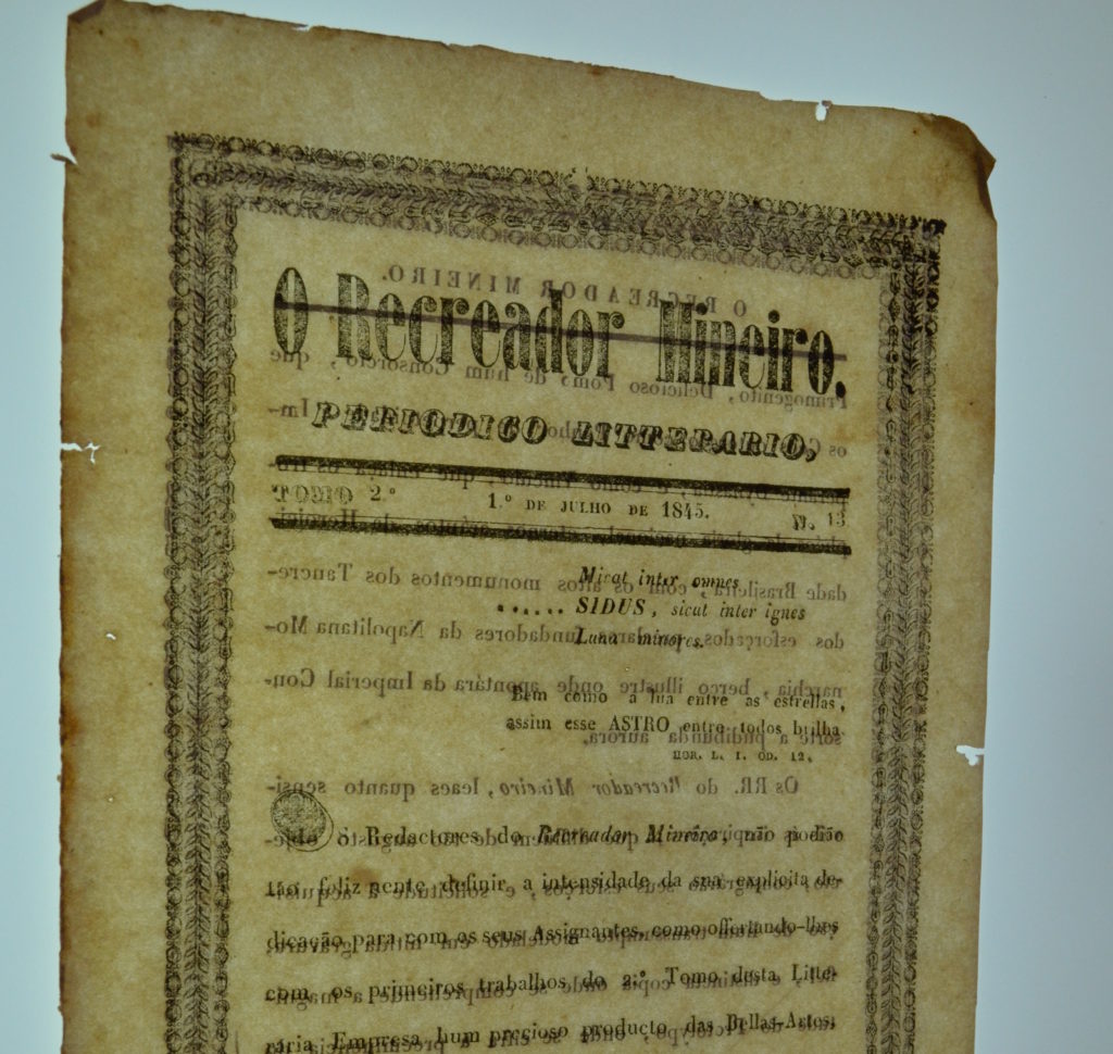 Periódico literário “O Recreador Mineiro” (1845) depois de ser iluminado para análise.