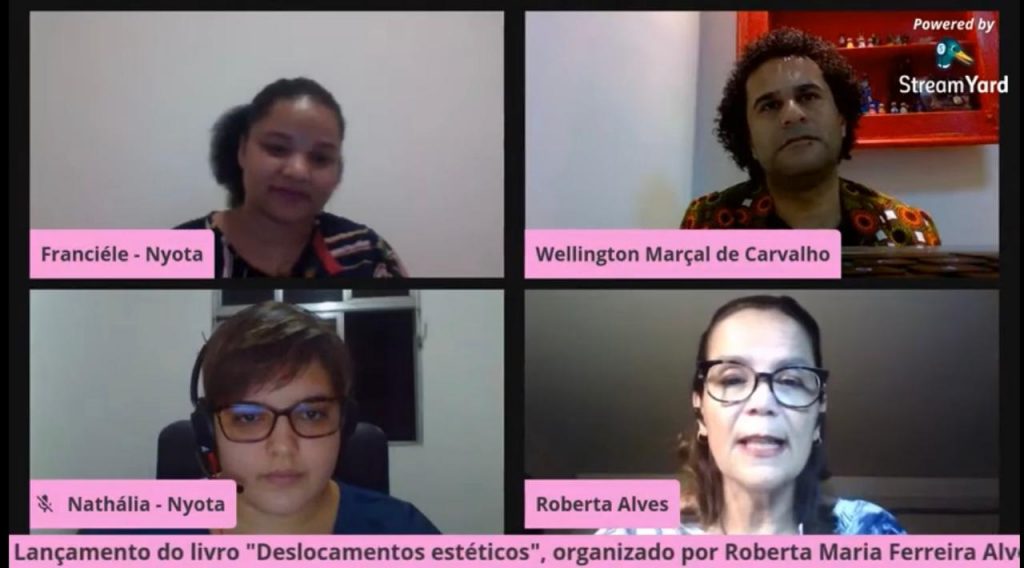 Aconteceu no último dia 02 de setembro a live de lançamento do livro “Deslocamentos estéticos” organizado pelo Bibliotecário da Escola de Veterinária da UFMG, Wellington Marçal, em parceria com a Professora Roberta Maria Ferreira Alves, da UFVJM. Ambos fazem parte do Grupo de Estudos de Estéticas Diaspóricas, criado e coordenado pela Professora Maria Nazareth Soares Fonseca, quando ela atuava como professora de Letras/Literaturas na PUC Minas.