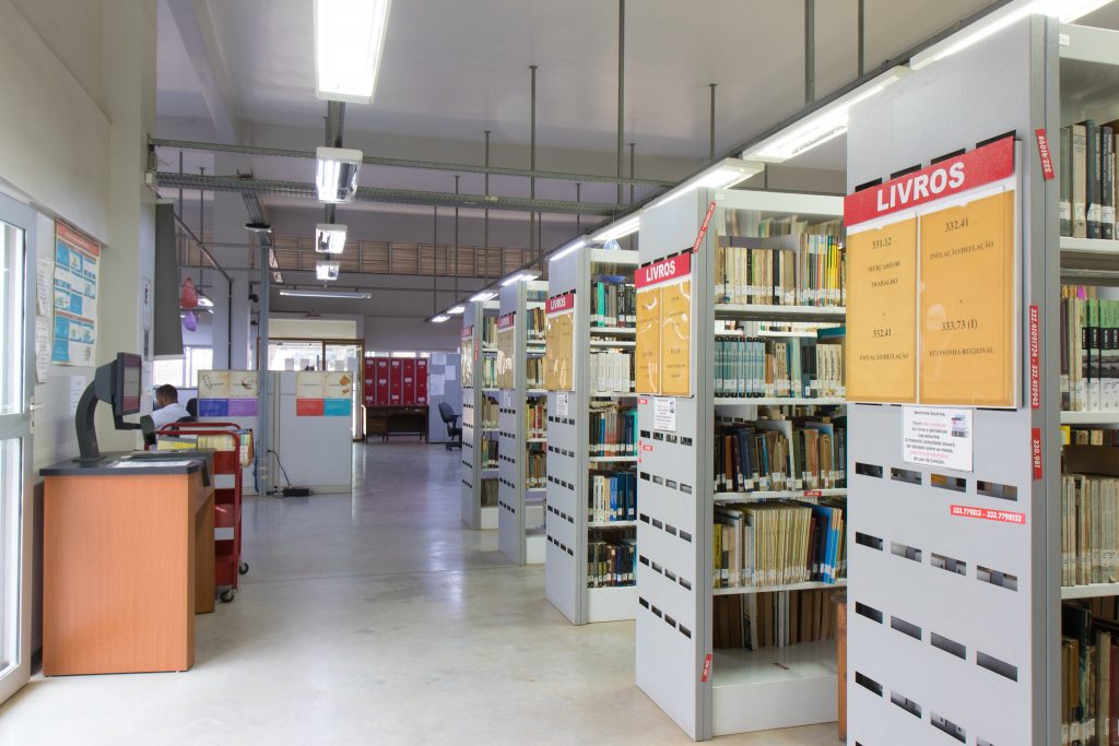 Biblioteca da Faculdade de Ciências Econômicas, uma das 26 unidades do Sistema, oferece serviço de autoatendimento e salão de estudos com funcionamento 24 horas. Foto: Lucas Braga/UFMG