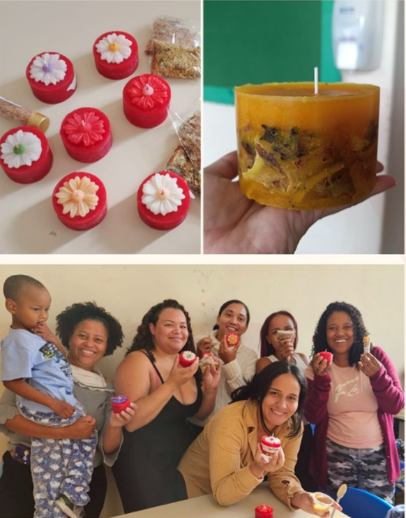 “A oficina para as mães nasceu da vontade de acolher e transformar realidades. Com imensa alegria, vamos participar da feira solidária com a venda das velas que simbolizam troca de informação, de cuidado e conhecimento compartilhado. Contamos com a participação de todos vocês para prestigiarem o nosso trabalho, fortalecendo nossa rede de solidariedade”, enfatiza a bolsita Vera da Silva.