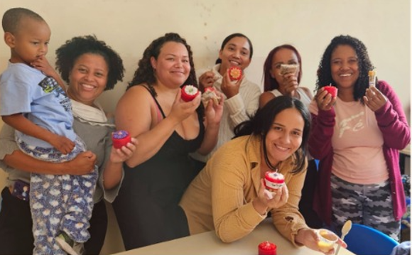 Oficina de velas fortalece vínculos entre as mães das crianças em tratamento. Imagem: arquivo Carro-Biblioteca