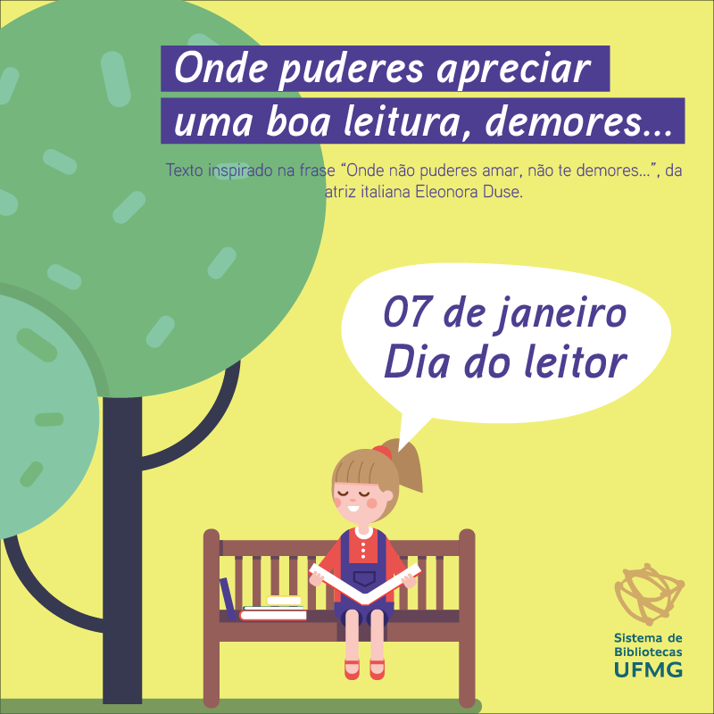 Dia do leitor domingo, 7 de janeiro 2018, às 14h50 Celebremos esse dia especial apreciando uma boa leitura em nossas bibliotecas todos os 365 dias do ano! Compartilhe