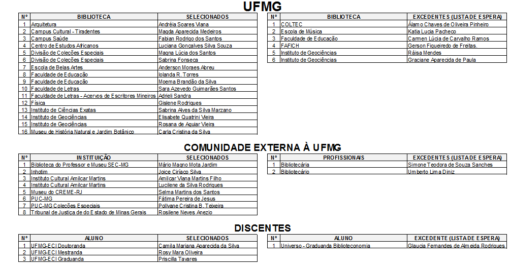 Resultado da seleção para o curso Princípios de Descrição Bibliográfica