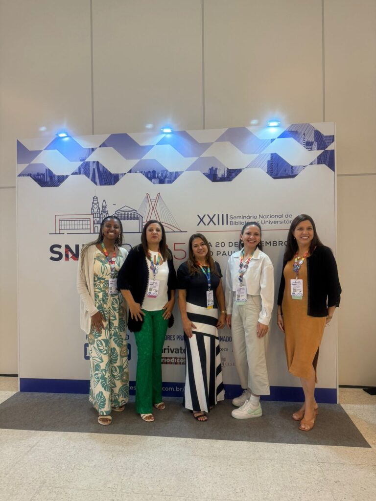 Com o tema ‘Ciência Aberta: realidade (im)possível?’, a 23ª edição do Seminário Nacional de Bibliotecas Universitárias (SNBU 2025) foi realizada de 17 a 20 de novembro na cidade de São Paulo e contou com palestras de profissionais de todo o país. As bibliotecárias Cleide Vieira, Rosilene de Sá, Danielle Oliveira e Gracirlei Lima, acompanhadas pela diretora da Biblioteca Universitária, Izabel Araújo, representaram a UFMG no evento. Elas apresentaram reflexões e estudos relevantes para a área.