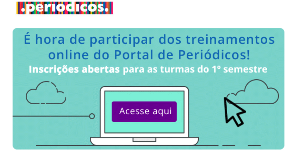 A Capes oferece, gratuitamente, treinamentos online no uso do Portal de Periódicos a todos os usuários de graduação e pós-graduação das instituições participantes. Os treinamentos são realizados todos os dias, em turnos diferentes, e oferecidos por área do conhecimento. São várias possibilidades à disposição dos usuários do Portal! Além de aprender sobre os tipos de busca e outros serviços disponíveis, os participantes assistem aos treinamentos ministrados por representantes das editoras e sociedades científicas com as quais a Capes assina os conteúdos.