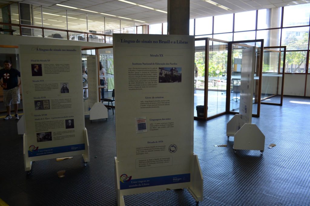 A Biblioteca Central recebe, do dia 4 de agosto a primeiro de setembro, a exposição “Uma Viagem ao Mundo das Libras”, que apresenta um percurso da língua de sinais no mundo e no Brasil, as lutas, cultura e as comunidades surdas, mitos e verdades sobre Libras, com destaque para as legislações que regem o assunto.