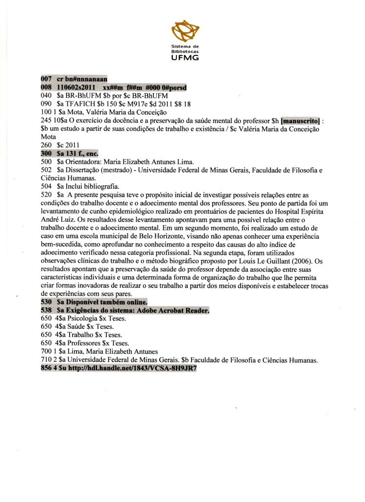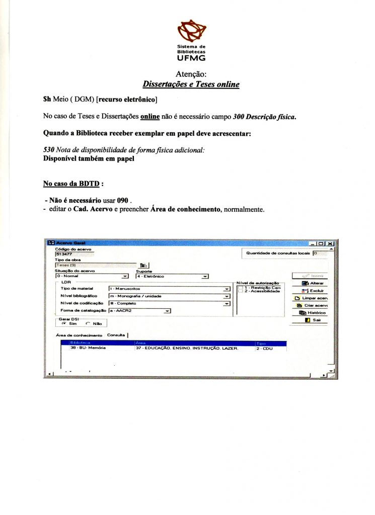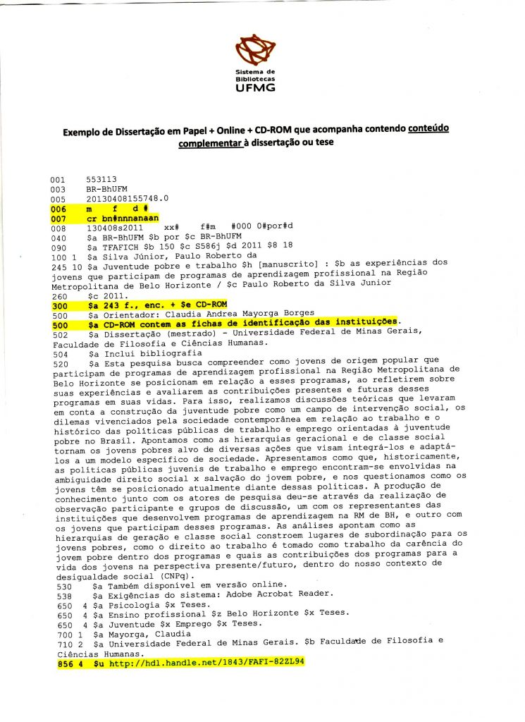 Campo 006 – Campo 500 – Campo 530 – Orientações para teses e dissertações