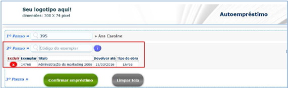- Inserir o Código do Exemplar, se for pegar mais de um livro inserir o código do outro exemplar em seguida;