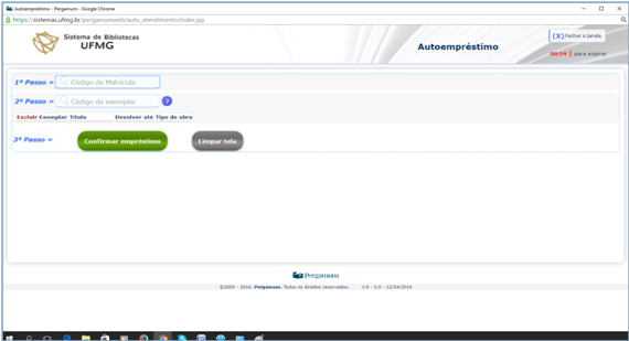 3. Será exibida a tela para entrar com as informações do código do usuário e código do exemplar