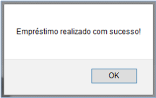 7. Também não serão permitidos o empréstimo de exemplares do mesmo acervo. Ao inserir o exemplar parecerá a seguinte mensagem: