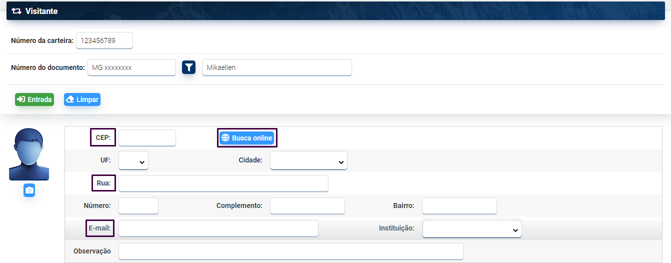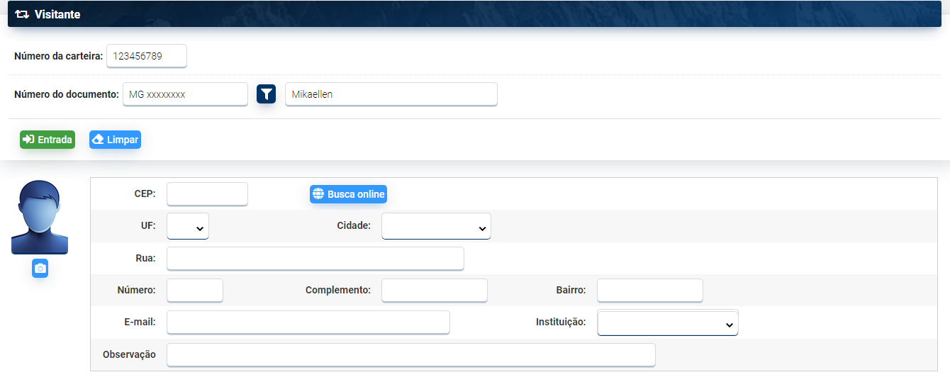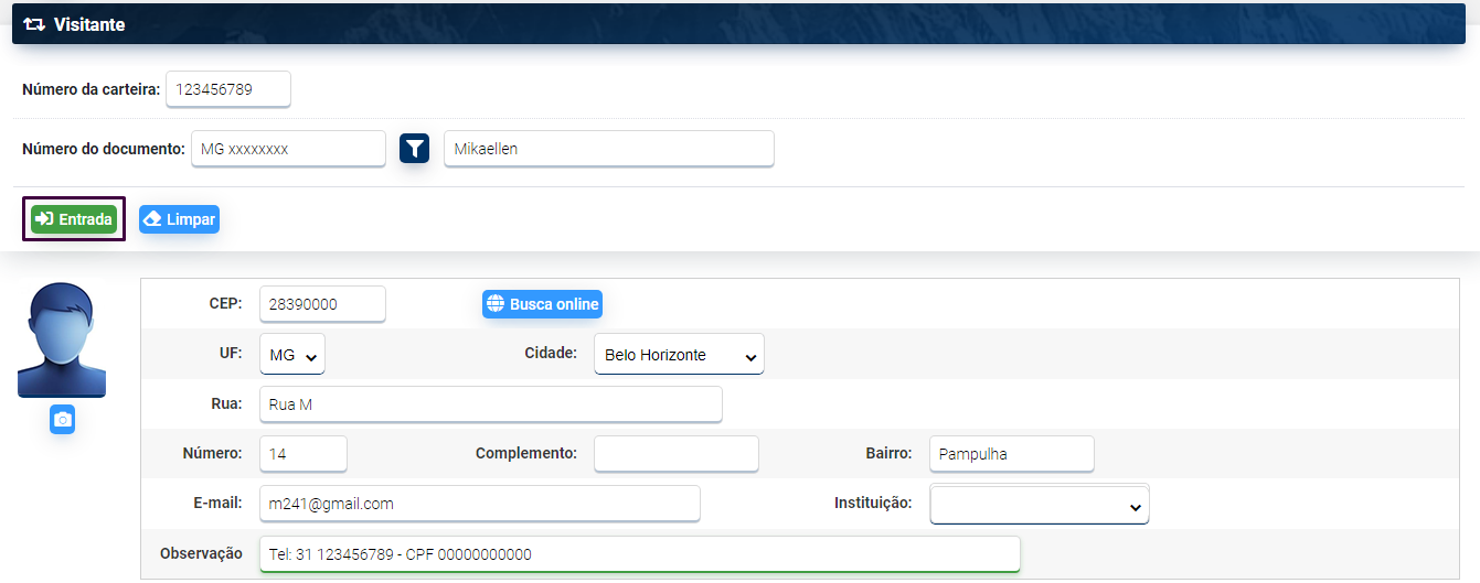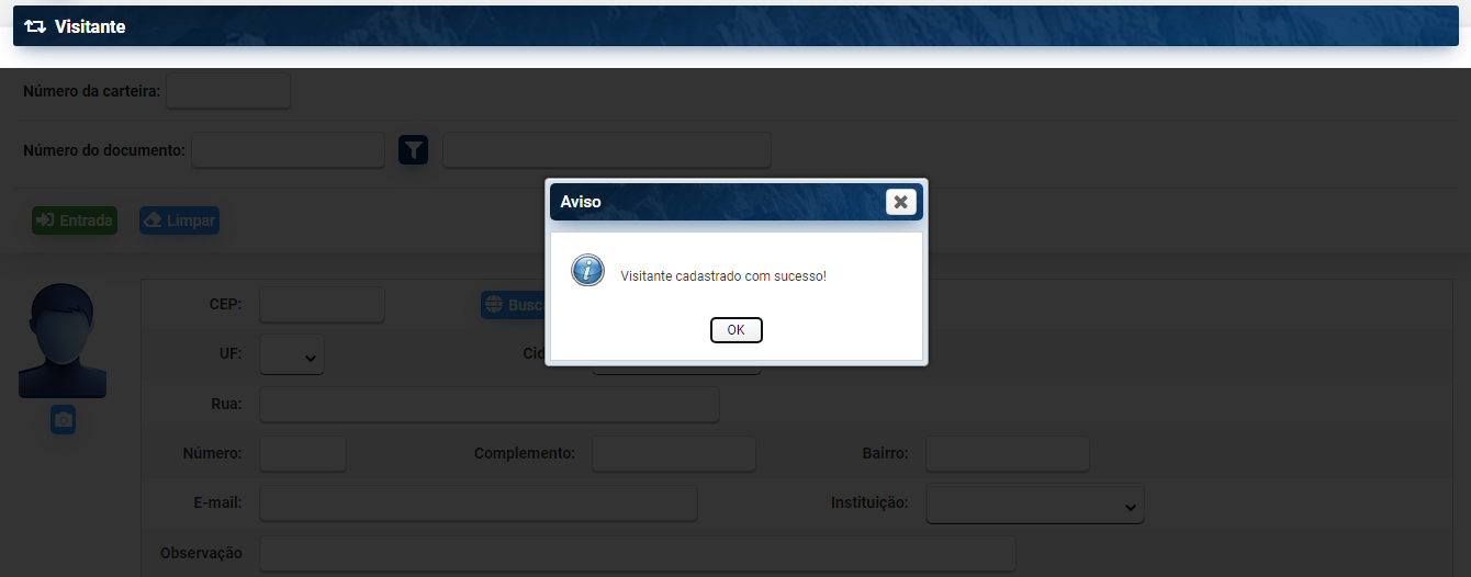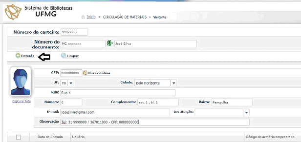 Encerrado o processo os dados do visitante ficam registrados no Pergamum e na carteira. Cada carteira só permite o cadastro de um visitante por vez. Não é possível reaproveitar a mesma carteira para cadastrar mais de um visitante. Só é possível reaproveitar a carteira quando for registrada a saída do visitante.