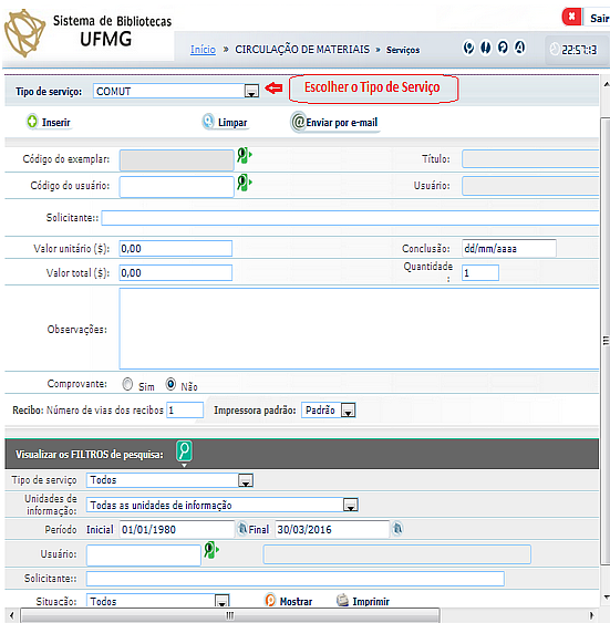 Este recurso possibilita gerenciar serviços prestados pela biblioteca que não são gerenciados por outros Módulos do Sistema.