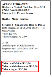 No recibo será gerado o valor do desconto, conforme imagem abaixo:
